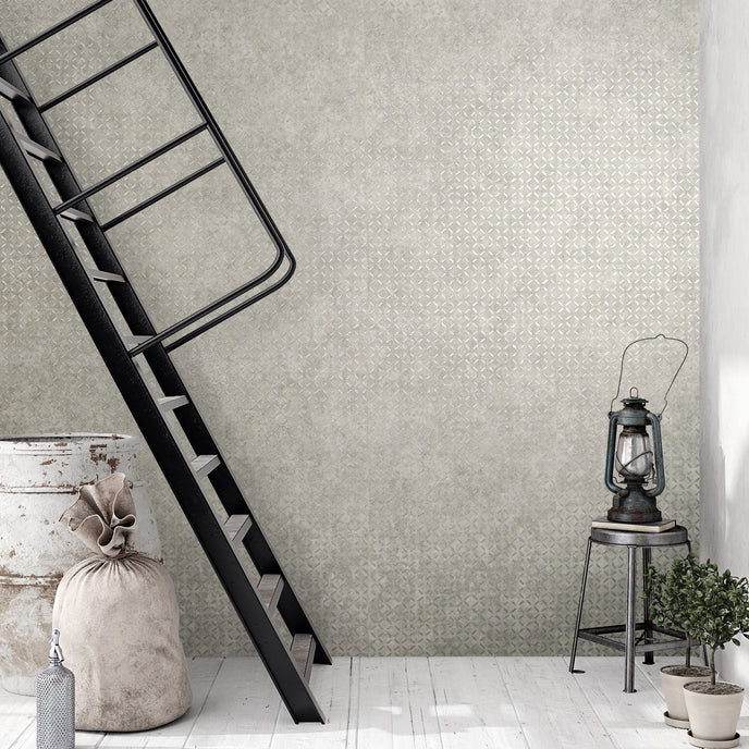 Soho wallpaper brings it to the surface with a structure that is reminiscent of iron grids. Clever gloss effects shift the effect into something noble.