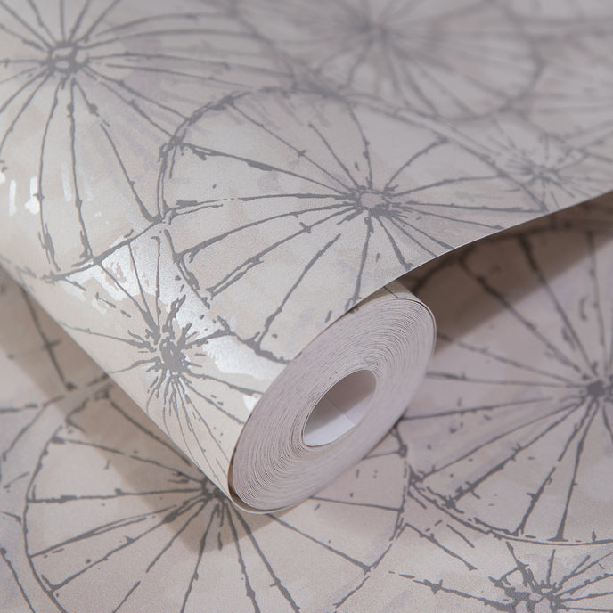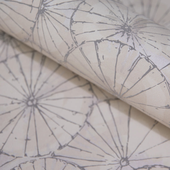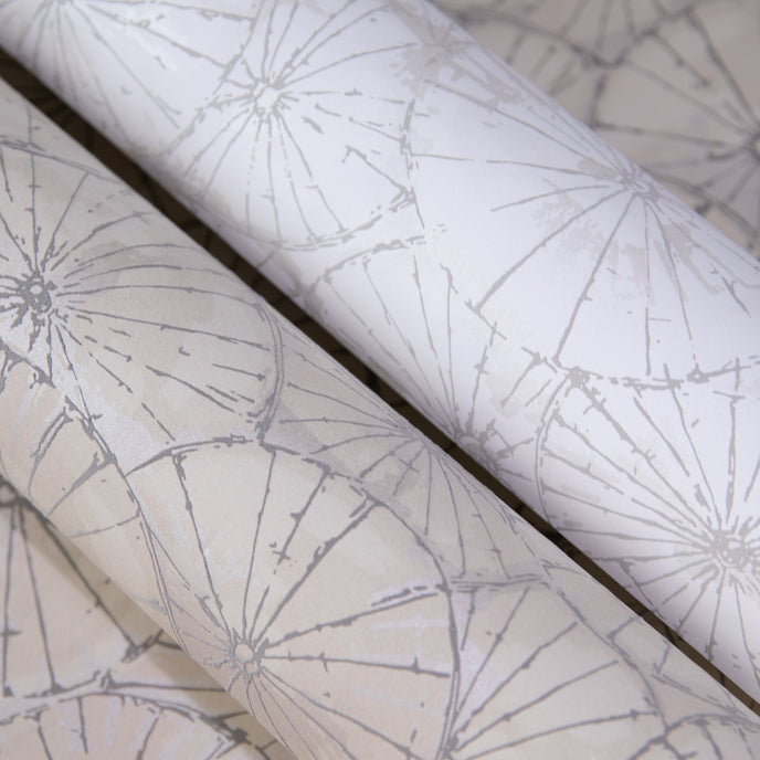 The Taiyo wallpaper combines the delicate beauty of traditional Japanese umbrellas with modern wall design that creates circular umbrella.