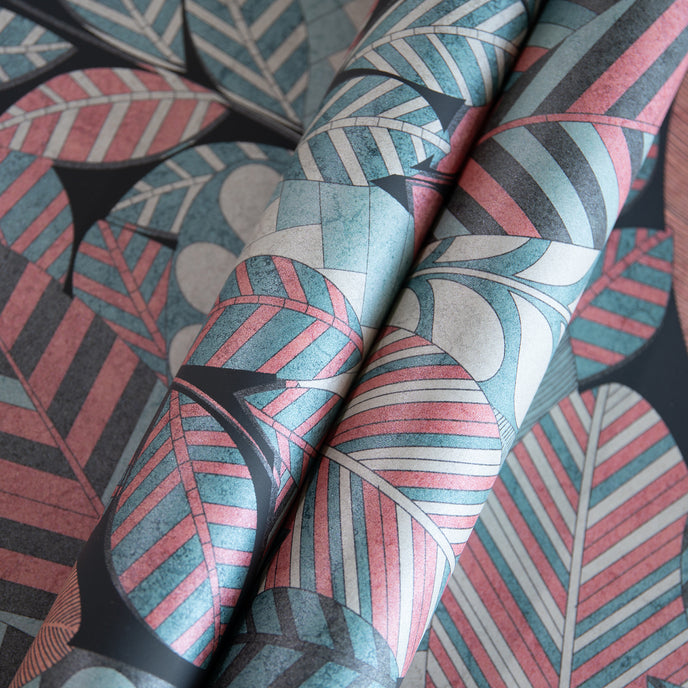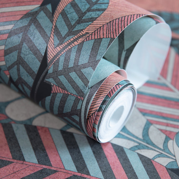 The Cariba wallpaper combines stylised leaf shapes with an expressive, organic pattern. The design conveys a vibrant naturalness and brings the charm of tropical plant life directly into your living spaces. Whether your interior design is modern or classic, this wallpaper offers a perfect balance between elegance and dynamic expression.