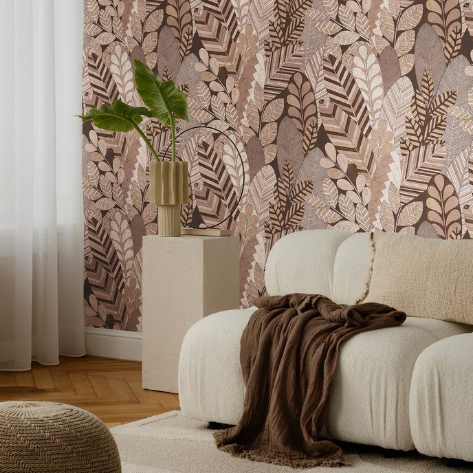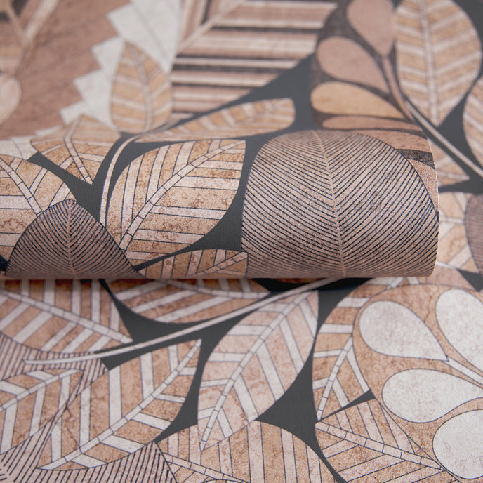 The Cariba wallpaper combines stylised leaf shapes with an expressive, organic pattern. The design conveys a vibrant naturalness and brings the charm of tropical plant life directly into your living spaces. Whether your interior design is modern or classic, this wallpaper offers a perfect balance between elegance and dynamic expression.