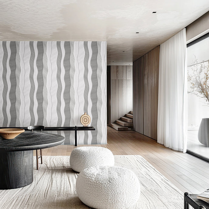 The Luana wallpaper captivates with a flowing, wave-like Beaded design that combines modern simplicity with natural movement. With its subtle patterning and elegant structure, it brings calm and dynamism to any room and creates a balanced ambience.