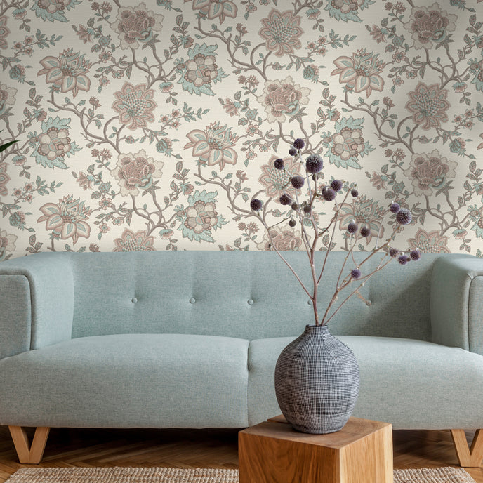 Jacobean Flower Tropical Wallpaper from Company Name! This wallpaper is perfect for adding a unique touch to any room. Featuring a beautiful tropical flower pattern, this wallpaper will bring the feeling of the tropics right into your home.