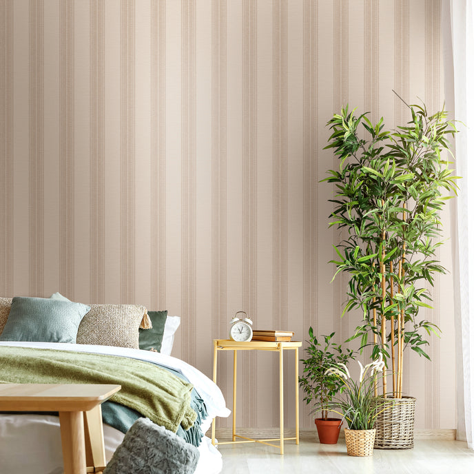 Give your home a complete makeover with this stylish Woven Fabric Inspired Stripes Wallpaper! This wallpaper is made of high quality materials that can withstand everyday wear and tear.
