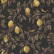 A beautifully-painted lemon trail with birds perched on the branches adorned with green leaves, berries and golden lemons.