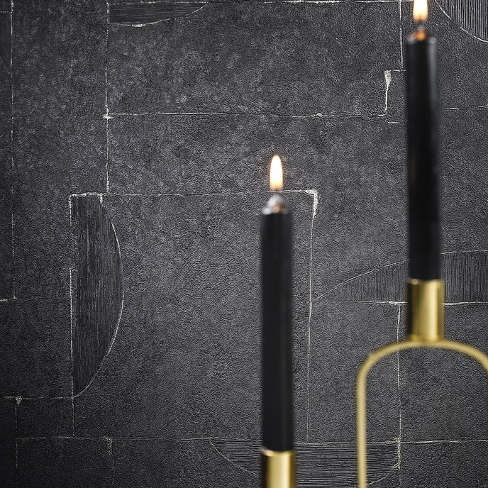 This graphical wallpaper almost cubistic shapes sit on a plaster effect background. Textural infills result in a balanced, rhythmic effect that will simply look gorgeous in any interior space.