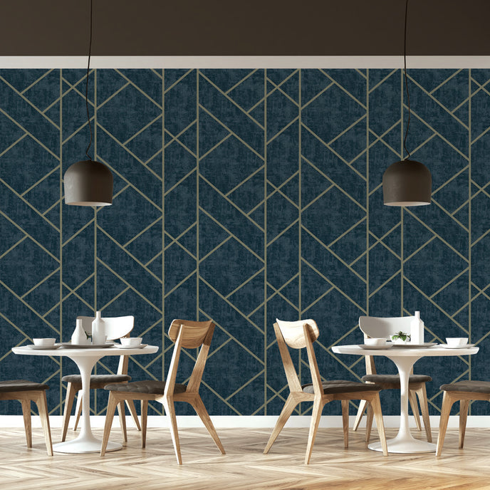 Casanova Geo Design 77014 a bold design in Aegean blue with pewter detail.