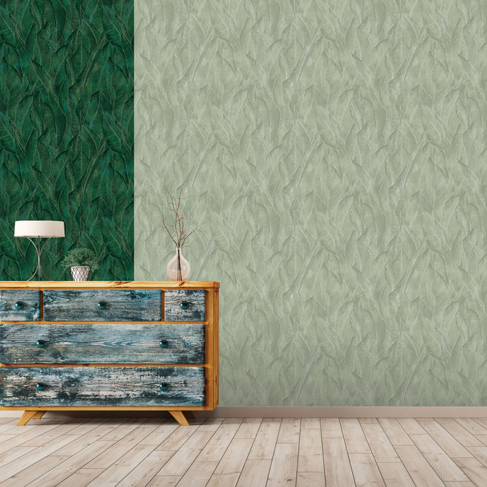 Casanova Lush Leaves 77028 a rich and impactful wallpaper. Lush emerald green leaves with a delicate detail.
