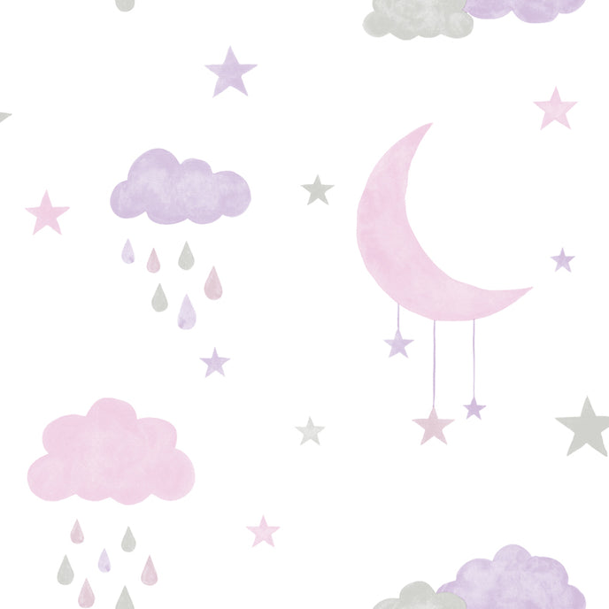 Casanova Moon Stars and Clouds AR2603 in pale pinks and grey