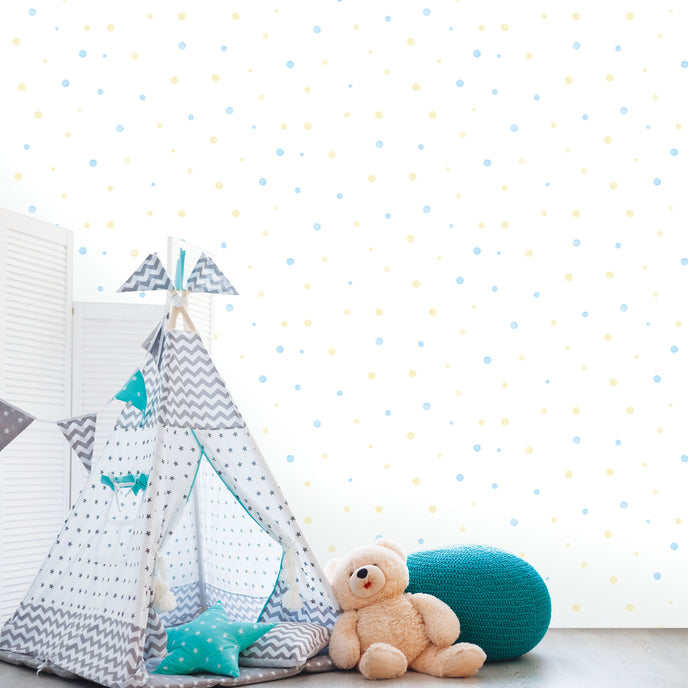 Casanova Polka Dots AR2808 create a fun space with this wallpaper in yellow and blue.