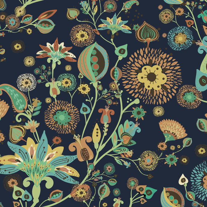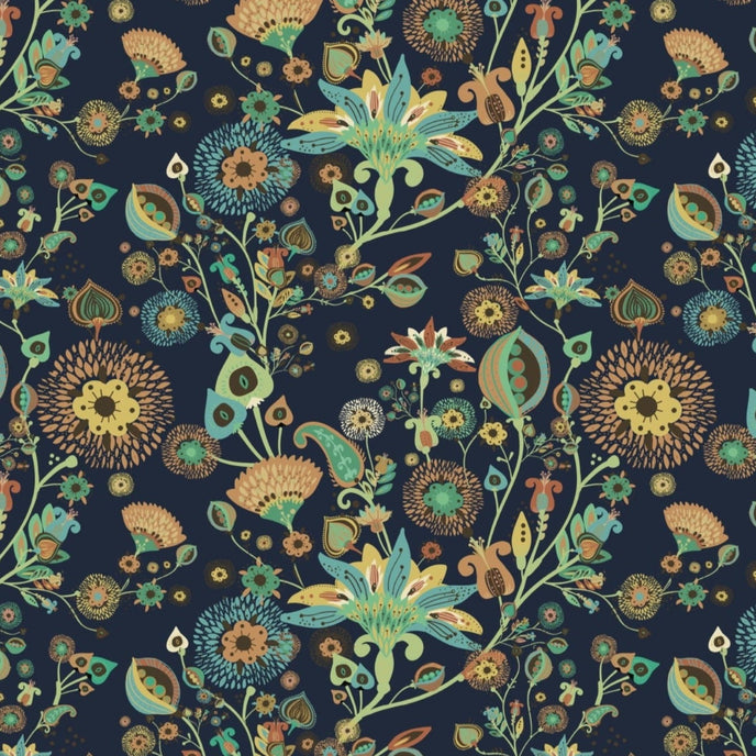 Floral Fun - Navy - [Custom printed at R560/m²]