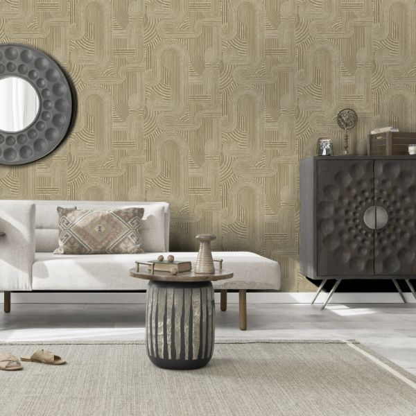 Macrame is an eye-catching, intertwined geometric design. Etched metallic highlights stand out on deep rich hue grounds, making opulent colourways with a touch of Bohemian charm. This stylish wallpaper will add a statement to any wall. This design is 100% PVC-Free