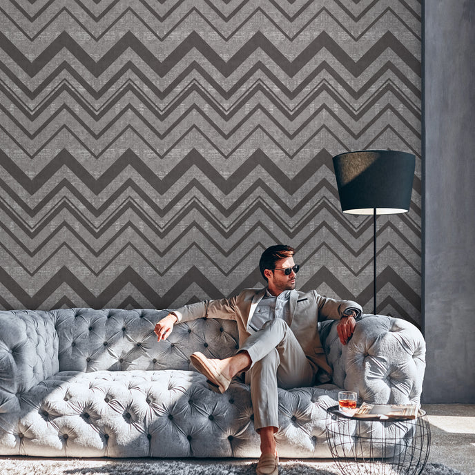 Octagon Chevron 1207-5. This luxurious modern design will create a dramatic effect on your wall at home or at work. Features shimmer and a little sparkle.