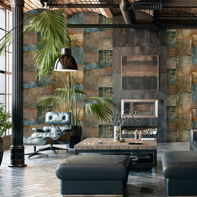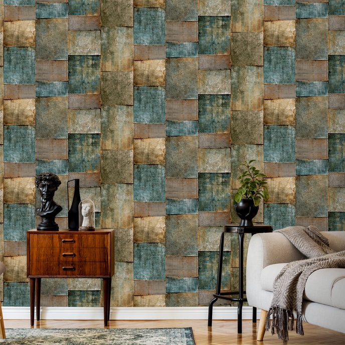 Octagon Metal Industrial Wallpaper 1215-1. A creative look for a modern look. Metal pieces woven to create a modern feature.