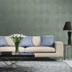 Slow Living Flow gives a geometric textured pattern in any living room. The sparkle adds some luxurious interest to the wallpaper. A stunning pistachio colour.