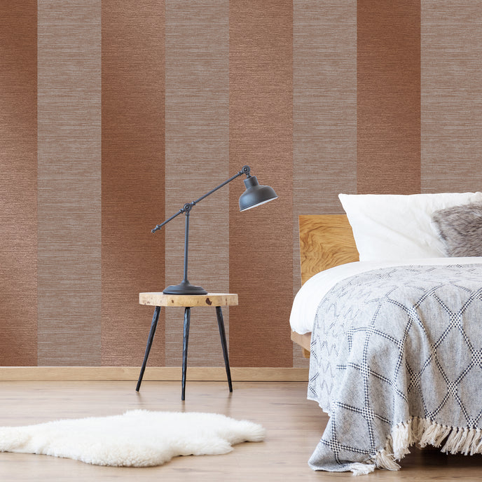 Utilising warm tones and alternating the metallic and the matt stripes gives this wallpaper a luxurious and sophisticated feel.
