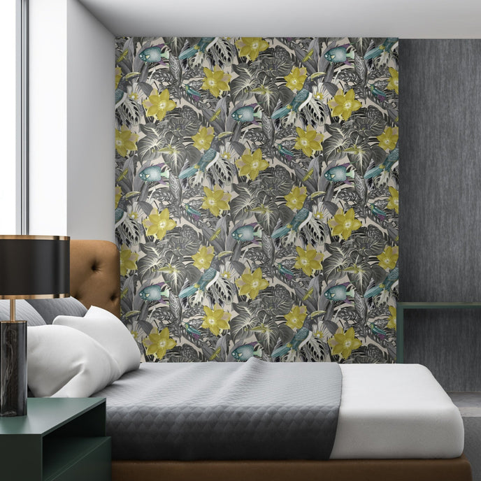 The TROPICAL by HOHENBERGER has you yearning for color and far-off lands. It satisfies the desire for fresh perspectives and feel-good locations. The tropical atmosphere is created by motifs of the fantastical flora and fauna. Blue and green tones evoke images of palm trees and water. Brick red, violet, and pink accents are vibrant and very decorative. And if you want to incorporate the exotic into your home but with softer hues, you can choose stunning motifs in muted tones of grey and beige. This collection consistently gives you the impression that you are in a distant location. The ability to make your own original combinations is what makes the new collection special.
