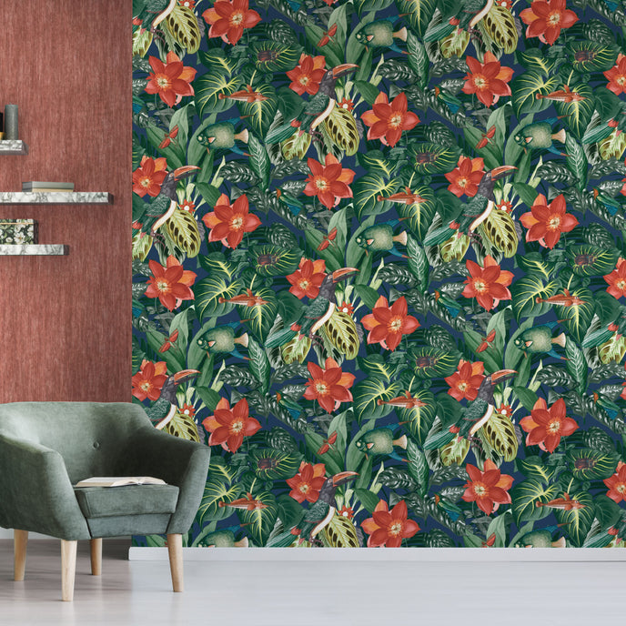 The TROPICAL by HOHENBERGER has you yearning for color and far-off lands. It satisfies the desire for fresh perspectives and feel-good locations. The tropical atmosphere is created by motifs of the fantastical flora and fauna. Blue and green tones evoke images of palm trees and water. Red, violet, and pink accents are vibrant and very decorative. And if you want to incorporate the exotic into your home but with softer hues, you can choose stunning motifs in muted tones of grey and beige. This collection consistently gives you the impression that you are in a distant location. The ability to make your own original combinations is what makes the new collection special.