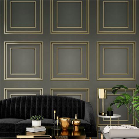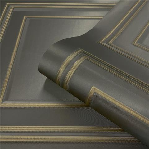 Wood Panel Wallpaper Gunmetal & Gold 7386